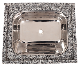 • Bordas coladas por cima do tampo com polimento industrial; • Cuba com sistema sobrepor colada por cima, encaixada na pedra.